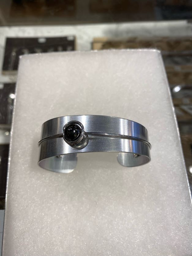 Bracelet pour femme en aluminium anodisé orné d'une hématite - petit format - sculpté et peint à la main à Montréal, Québec.