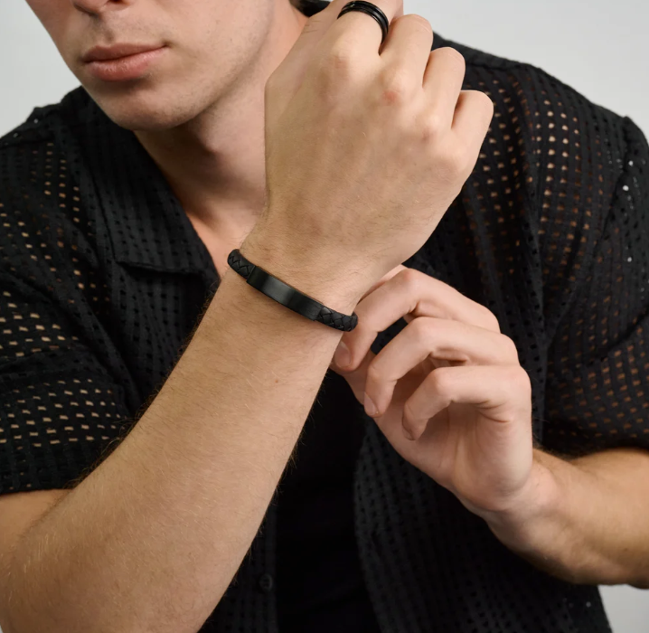Bague en acier inoxydable noire de 7 mm, avec une finition mate et brillante, élégante et contemporaine.