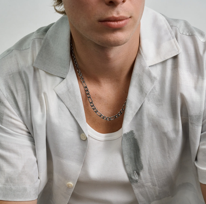 Collier Figaro en acier inoxydable de 7 mm, classique et intemporel. Disponible en 18'', 20'', 22''.